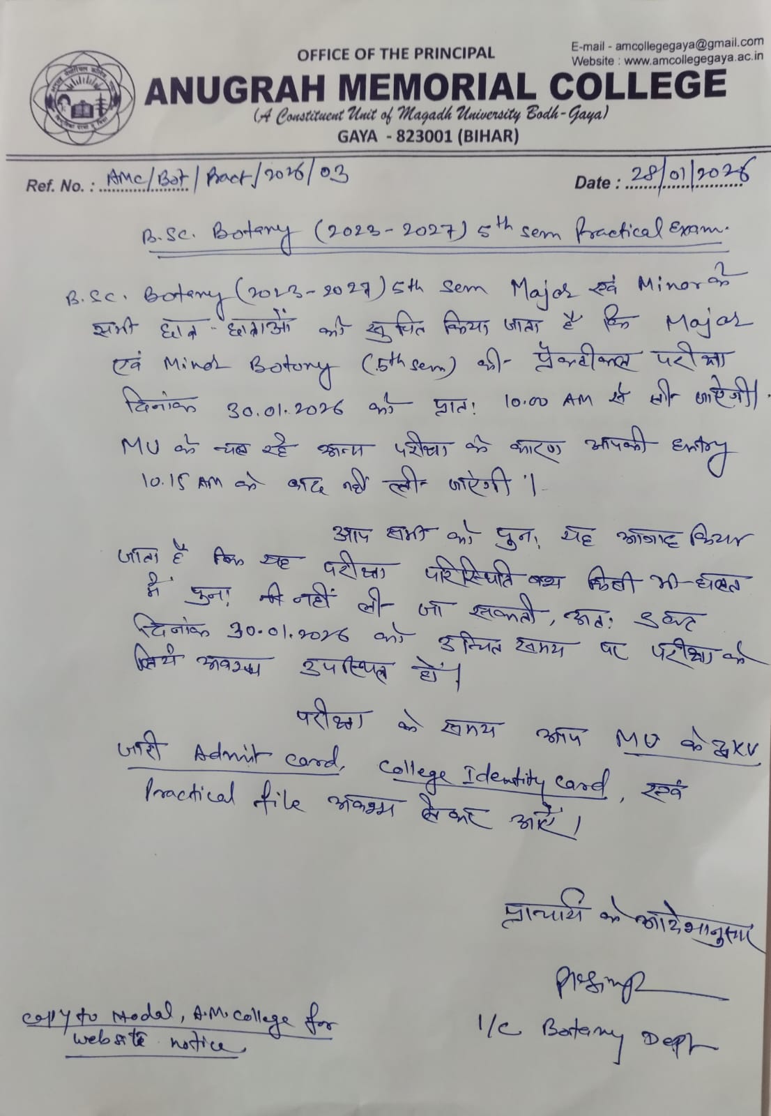 News & Updates >> Notice: B. Sc. Sem - V Botany Practical Exam 2023-27